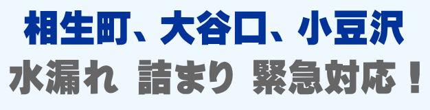 相生町、大谷口、小豆沢での水の困った即解決!急な水道トラブルに緊急でかけつけ訪問し、蛇口の水漏れ、トイレ詰まり、排水の溢れ、タンクの故障など修理いたします。