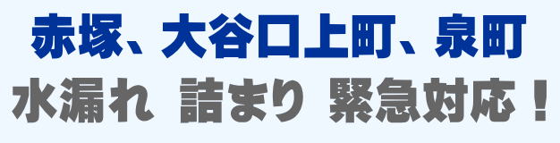 赤塚、大谷口上町、泉町での水の困った即解決!急な水道トラブルに緊急でかけつけ訪問し、蛇口の水漏れ、トイレ詰まり、排水の溢れ、タンクの故障など修理いたします。