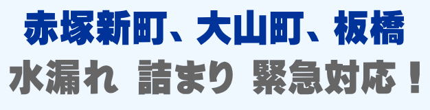 赤塚新町、大山町、板橋での水の困った即解決!急な水道トラブルに緊急でかけつけ訪問し、蛇口の水漏れ、トイレ詰まり、排水の溢れ、タンクの故障など修理いたします。