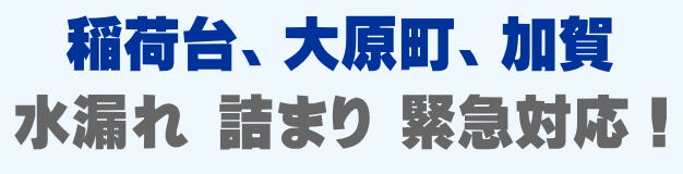 稲荷台、大原町、加賀での水の困った即解決!急な水道トラブルに緊急でかけつけ訪問し、蛇口の水漏れ、トイレ詰まり、排水の溢れ、タンクの故障など修理いたします。